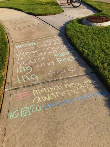 Although a children’s activity, chalking helps spread messages throughout the community. These messages consist of uplifting phrases, quotes, and much more, and will be written throughout the community.